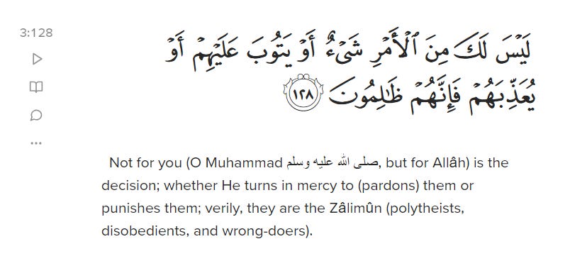 “You have no authority whatsoever, (talking to the prophet s.a.w) wether He wants to accept the taubah, or He wants to punish them, then they are in fact, have done great wrong.”